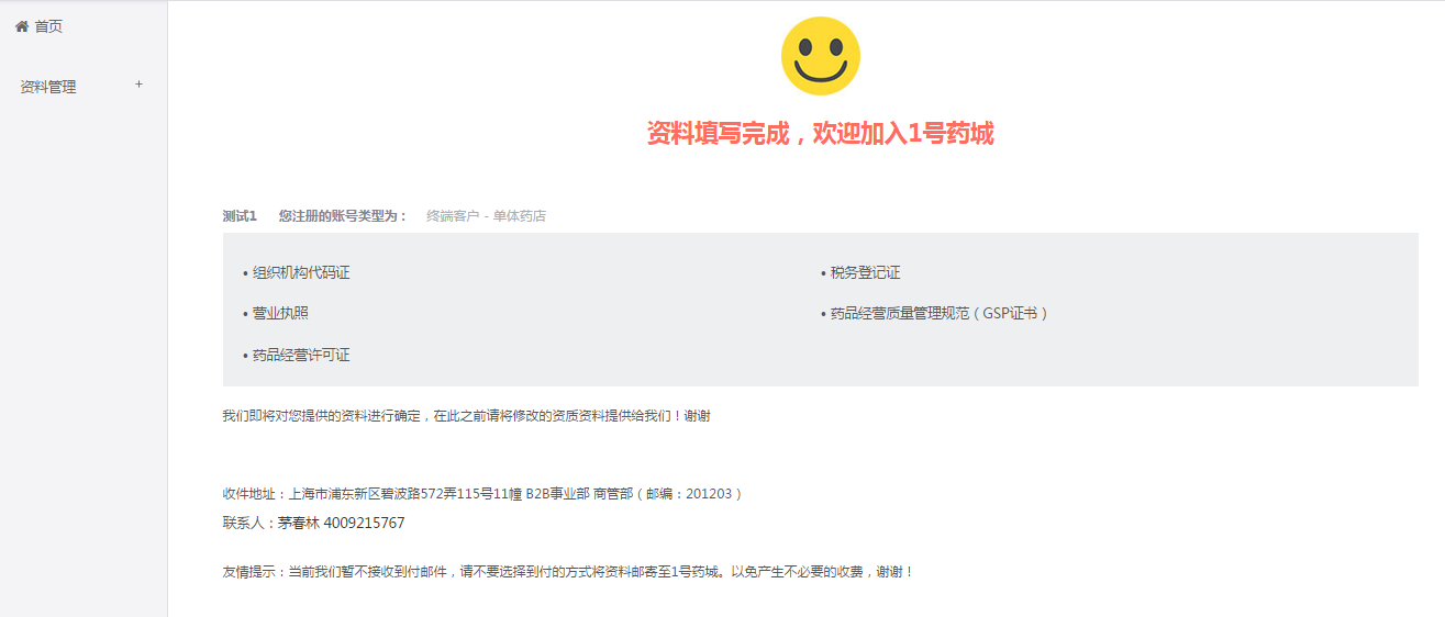 2資料填寫完成后,需要把紙質資料郵寄給1藥城質管審核