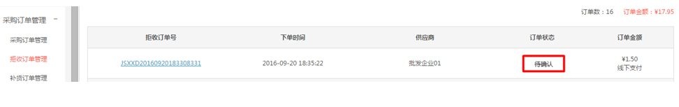 3進入拒收訂單管理頁面進行查看,此時拒收訂單狀態為“待確認”,請等待賣家審核