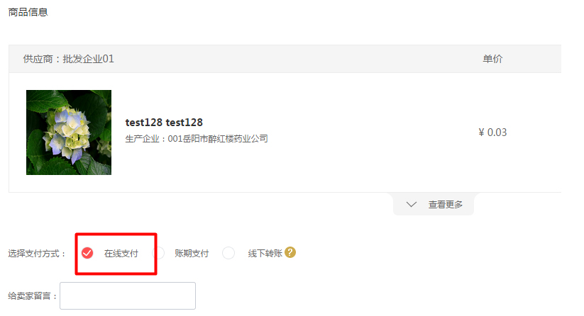 1在確認訂單信息頁面,選擇"在線支付"后,點擊“提交訂單”