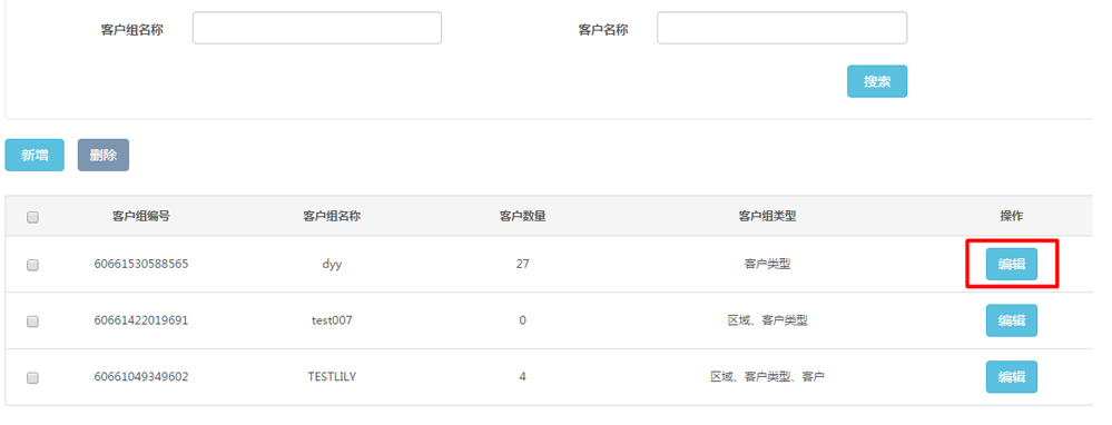 3返回“客戶組管理”頁面,新增的客戶組會顯示在列表上端;點擊“編輯“按鈕,可以對建立好的客戶組進行修改